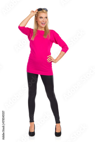 Fototapeta premium Excited Beautiful Woman Is Looking Away And Shouting