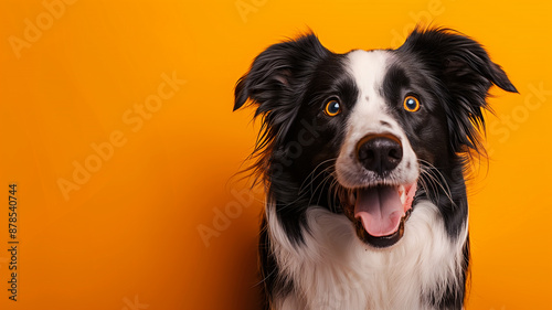 © Taylor, Fototapeta premium Excited Border Collie Portrait on Orange Background