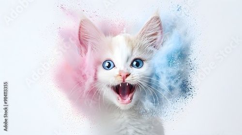 Fototapeta premium Excited cat, ears perked, open mouth, vibrant colors, watercolor style