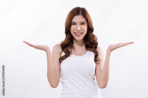 © Washburn, Fototapeta premium Excited woman expressing surprise with hands on face