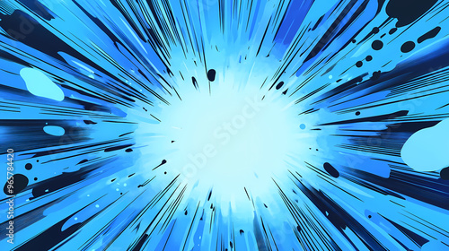 © Thiago, Naklejka premium Exciting blue comic style background filled with energy and motion. Comic Book Style. Illustration