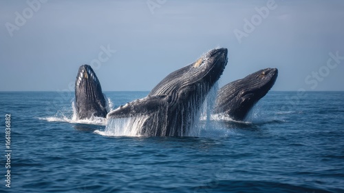 © Kitta Studio, Fototapeta premium Exciting Humpback Whales Breaching in Clear Ocean Waters