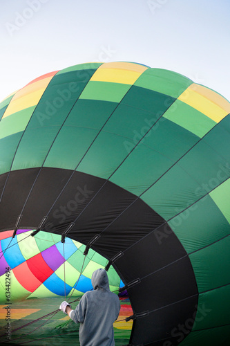 © Olga, Obraz premium Exciting moment of future journey. Preparing balloon to rise in sky for adventure.