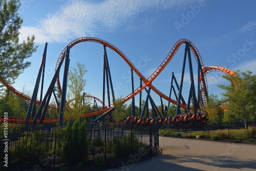 Obraz premium Exciting roller coasters with vibrant tracks and cheerful riders under a...