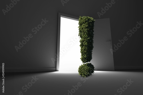 © vectorfusionart, Obraz premium Exclamation mark of topiary at doorway