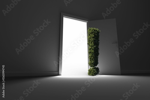 © vectorfusionart, Obraz premium Exclamation mark shaped topiary at doorway