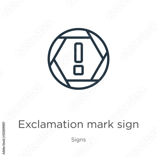 © Premium Art, Obraz premium Exclamation mark sign icon. Thin linear exclamation mark sign outline icon isolated on white background from signs collection. Line vector sign, symbol for web and mobile