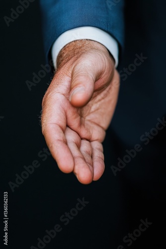 © Ryzhkov, Fototapeta premium Executive Minimalism Professional Hand Gesture in Deep Blue Corporate Aesthetic - Refined Leadership Communication and Modern Workplace Nonverbal Dynamics