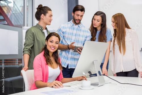 Fototapeta premium Executives discussing over digital tablet in conference room
