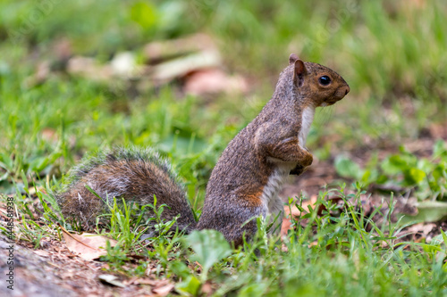 Naklejka premium Exemplary of Sciurus Carolinensis, the gray squirrel native of North America that populates some Italian parks in the Region of Lombardy, Piedmont and Liguria