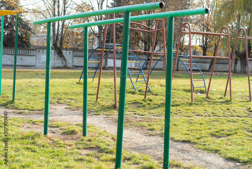 © Nariman, Fototapeta premium Exercise machines on the street in the school yard