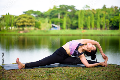 Fototapeta premium Exercise with yoga for health and relaxation,Asian woman.