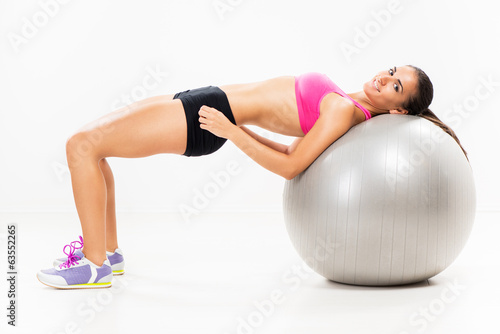 Naklejka premium Exercising and lifting the weights with Exercise Ball