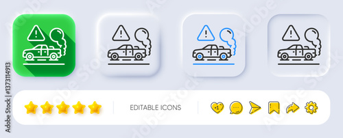 © blankstock, Fototapeta premium Exhaust line icon. Neumorphic, Flat shadow, 3d buttons. Car co2 fumes sign. Vehicle danger emission symbol. Line exhaust icon. Social media icons. Vector