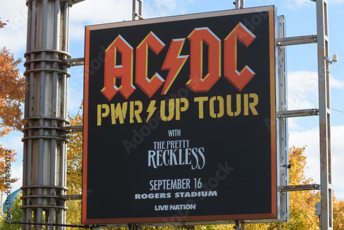© eugen, Fototapeta premium Exhibition Place digital roadside billboard featuring a concert promotion for AC/DC PWR/UP Tour (September 16, 2026)