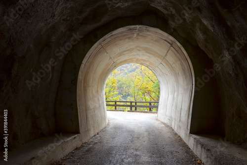 Obraz premium Exit from the tunnel with a beautiful view of the autumn nature