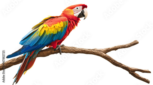 Obraz premium Exocotic colorful parrot on tree branch isolated on transparent or white background