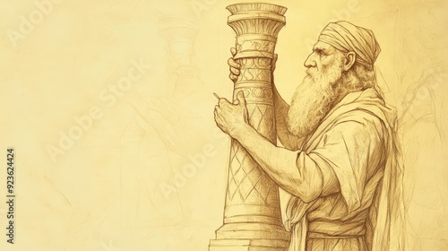 © T Studio, Fototapeta premium Exodus:Bezalel and Oholiab,Bezalel Creating Intricate Lampstand with Perfect Details as per God's Instructions - Biblical Illustration, Bible Wall Art, Beige Background
