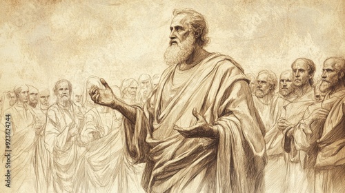 Fototapeta premium Exodus:Laws About Property,Authority and Clarity as Moses Explains Property Laws to Israelites - Biblical Illustration, Bible Wall Art, Beige Background - Laws About Property