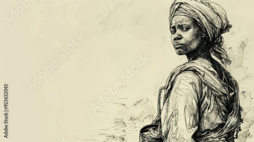 Fototapeta premium Exodus:The Israelites Oppressed,Bible Wall Art of Israelite Woman at Well, Worried Expression, Biblical Illustration, Beige Background