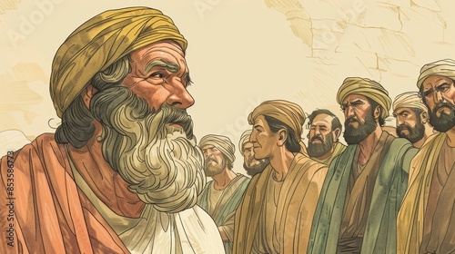 Naklejka premium Exodus,The New Stone Tablets,Radiant Face of Moses After Speaking with God: Divine Encounter and Transformation, Beige Background,Christian banner