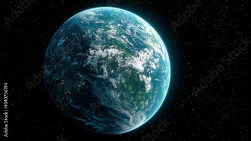 Obraz premium Exoplanet with Oceans and Continents Set Against Starry Backdrop, Ideal for...