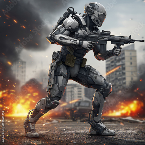 Fototapeta premium Exoskeleton Suit Enhancing Human Strength in Combat