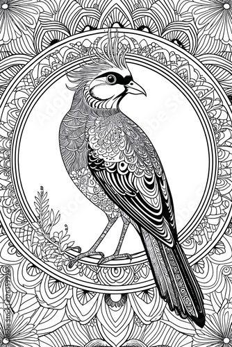 © Julie, Obraz premium Exotic Bird Mandala Coloring Page