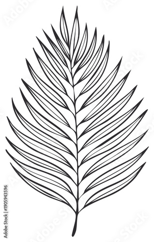 Obraz premium Exotic botanical palm leaf illustration in a minimalist outline drawing style