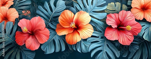 © Nuntapuk, Fototapeta premium Exotic Botanical Pattern with Monstera Leaves