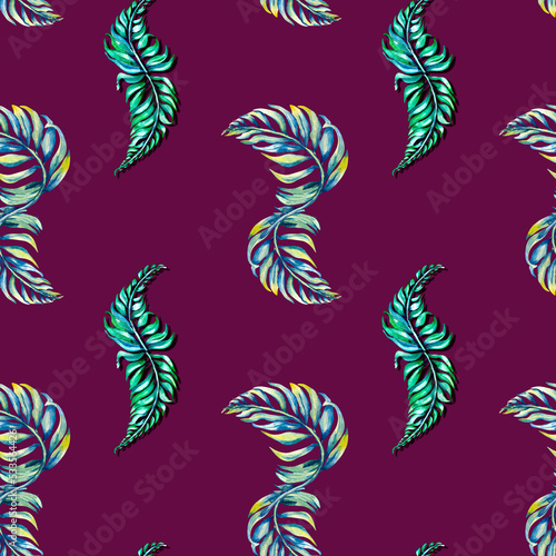 Fototapeta premium Exotic floral ornate seamless pattern watercolor illustration on pink