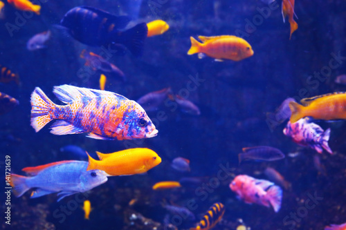 Fototapeta premium Exotic freshwater fishes in aquarium