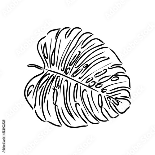 Obraz premium Exotic monstera. Continuous one-line drawing. Handmade summer tropical leaf...