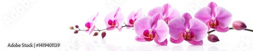 © aderag, Obraz premium Exotic orchid blooms against a stark white background, color gradation, elegance