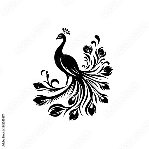 Obraz premium "Exotic Peacock Vector Illustration with Lush Colorful Feathers"