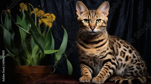 Obraz premium Exotic Savannah Cat in Dynamic Studio
