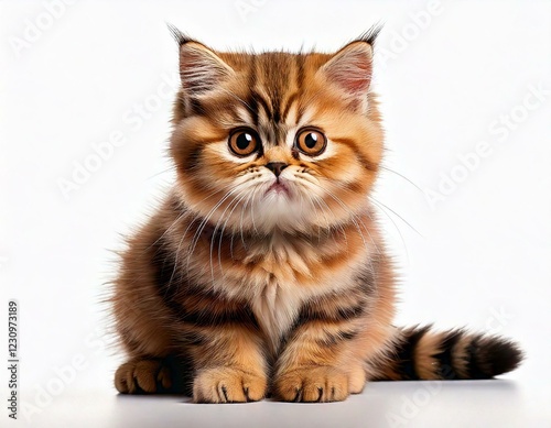 © MdRakibul, Obraz premium Exotic Shorthair kitten, 4 months old, sitting in front of white