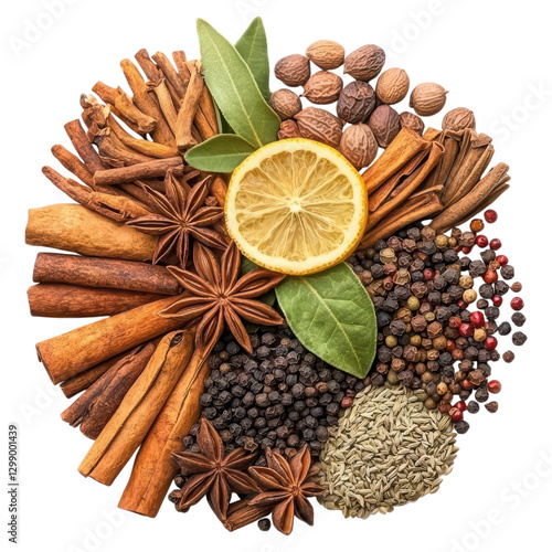 Fototapeta premium Exotic spices and herbs for culinary seasoning , Food concept, isolated on transparent background