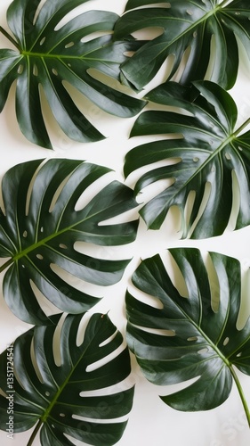 © Wix, Fototapeta premium Exotic tropical monstera palm leaves at white