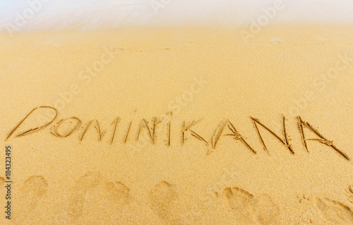 © Sergey, Fototapeta premium exotic vacation. Dominican republic written on the sand