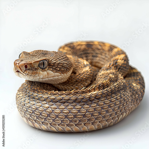 Obraz premium Exotic Venomous Snake Close-Up: Detailed Wildlife Photography of Coiled Brown...