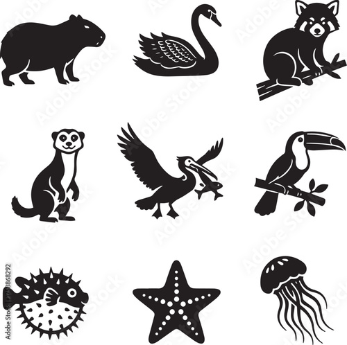 Naklejka premium Exotic Wildlife and Animal Silhouettes Vector Collection