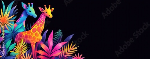 Obraz premium Exotic wildlife, brightly colored animals in dark forest, Watercolor style