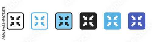 © SunnyScrap, Fototapeta premium Expand screen icon — vector illustration of digital interface with app, web, buttons, arrow, page, zoom, enlarge, full exit, tool, window, media, and UI elements on transparent background.