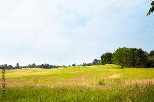 Obraz premium Expanded view of green grass meadow and trees