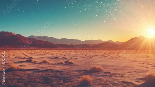 © brayen, Naklejka premium Expanse of a mystical desert landscape bathed in ethereal, otherworldly sunlight