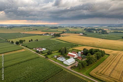 © Роман Заворотный, Fototapeta premium Expansive Aerial View of Farmland Under Moody Skies Generative AI