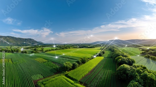 © Matcha_09, Fototapeta premium Expansive Agriculture Landscape with Networking Technology Concept Representing Connectivity and Innovation in Modern Farming Practices