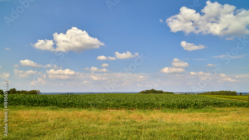 © jia, Fototapeta premium Expansive Corn Rows Stretching Toward the Horizon