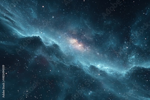 Obraz premium Expansive Deep Space Nebula with Gaseous Clouds, Shimmering Stars, and Cosmic...